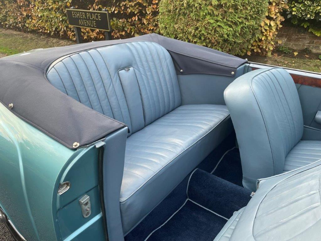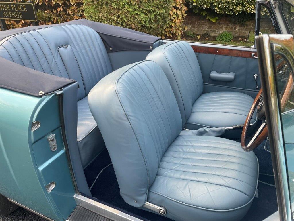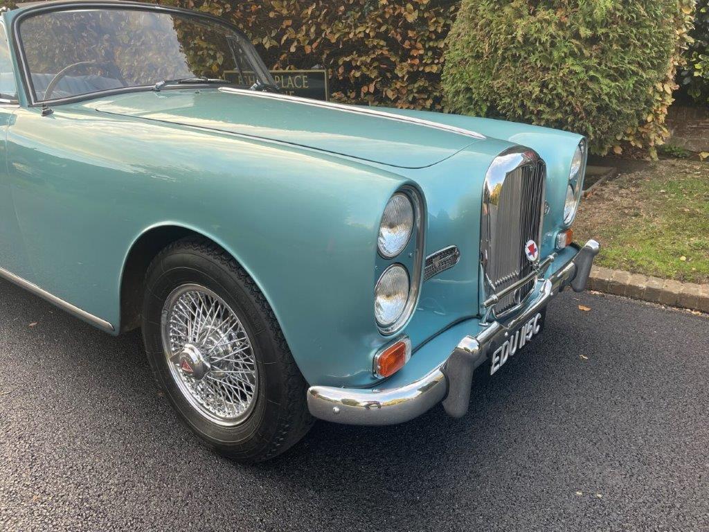 ALVIS TE 21 DROPHEAD COUPE 1965: Opalescent Silver Blue with Grey hide interior. Navy Blue mohair soft-top and hood cover. Chromium wire wheels. 5-speed ZF gearbox and power steering, with other useful upgrades. Restored some years ago. Classic British coach built four-seater touring car. £79,995 |