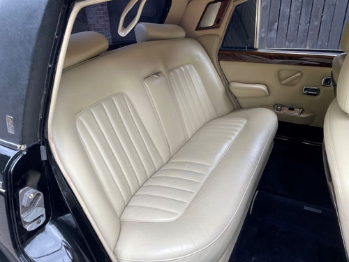 ROLLS-ROYCE SILVER WRAITH 11 1981. Masons Black with Beige hide interior. Black vinyl roof, dark tinted glass and whitewall tyres. Front and rear head restraints, picnic tables, twin door mirrors, chrome exterior door cappings and rear wing motifs, headlamp wash-wipe plus all the usual Shadow 11 extras like Air conditioning, electric seats etc. One private owner. 23,000 miles only from new. All usual refinements of this ‘Top-of-the-Range’ model. Please note it would be very easy to remove the window tinting tape if this was not to your taste. We can arrange to have the film removed if required. £39,995 |